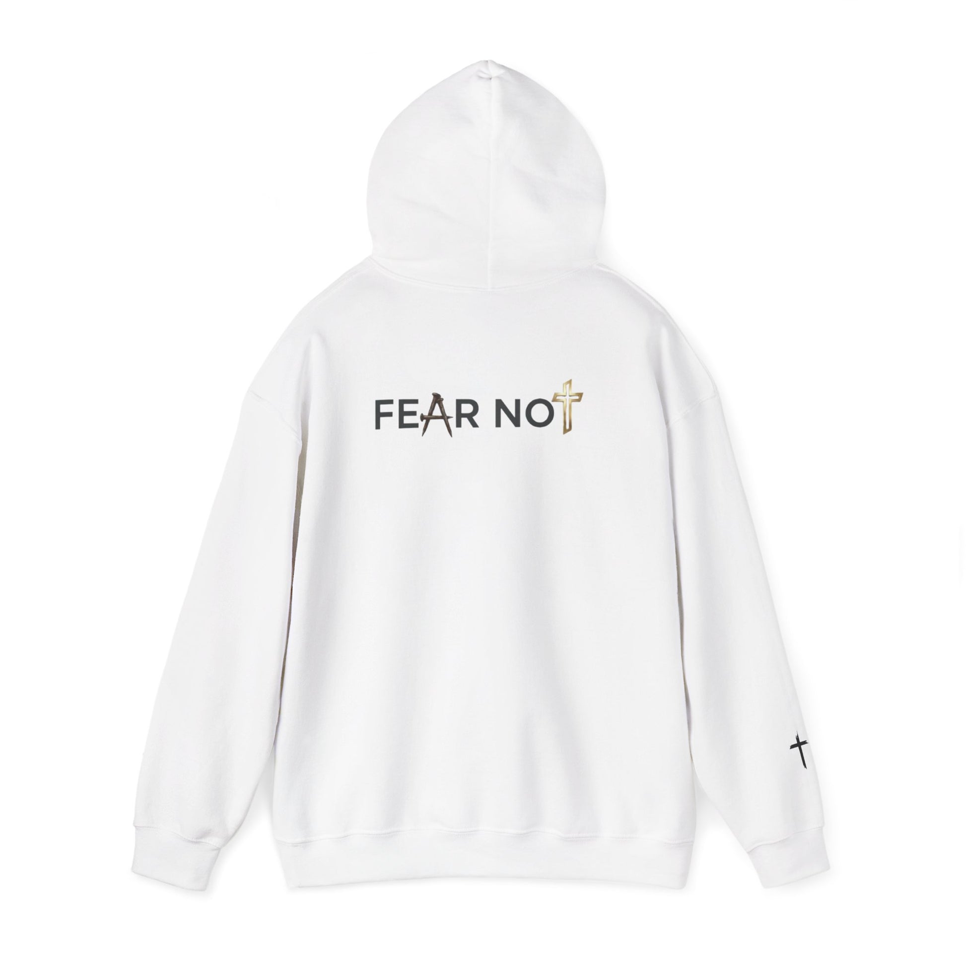 A calm, quietly confident hoodie that carries a gentle reminder through stormy days. Soft white fleece holds minimalist, hand-lettered text across the front — a repeated mantra: “CALM IN THE STORM” Clean lines, a roomy kangaroo pocket, and a color-matched double-lined hood make this piece feel like a wearable comfort. It’s for mornings with too much on your mind, late-night drives, or moments when you need a small, steady anchor. Wear it alone or layered under a coat; the understated faith-forward details speak to whoever seeks quiet courage without shouting it.