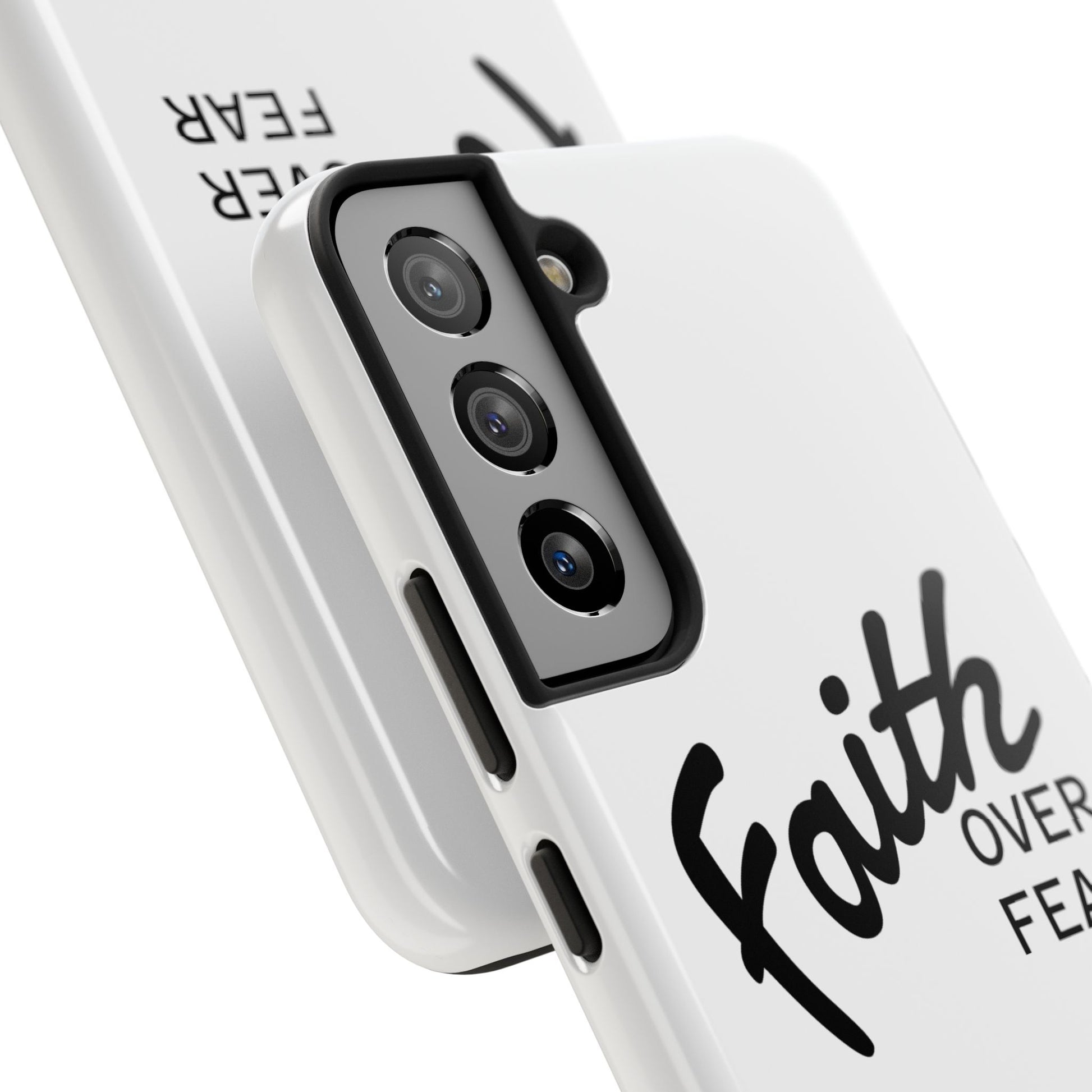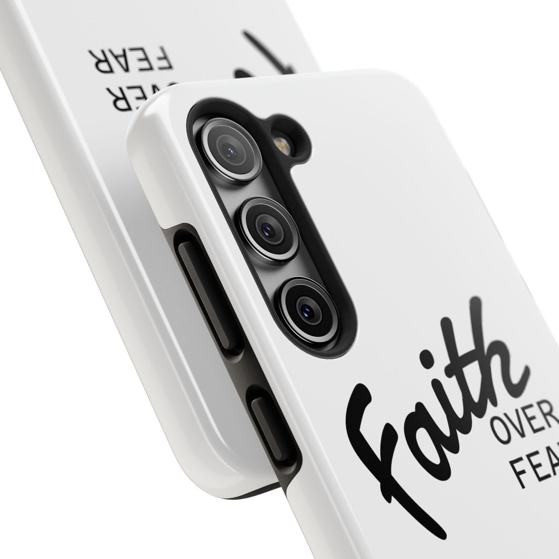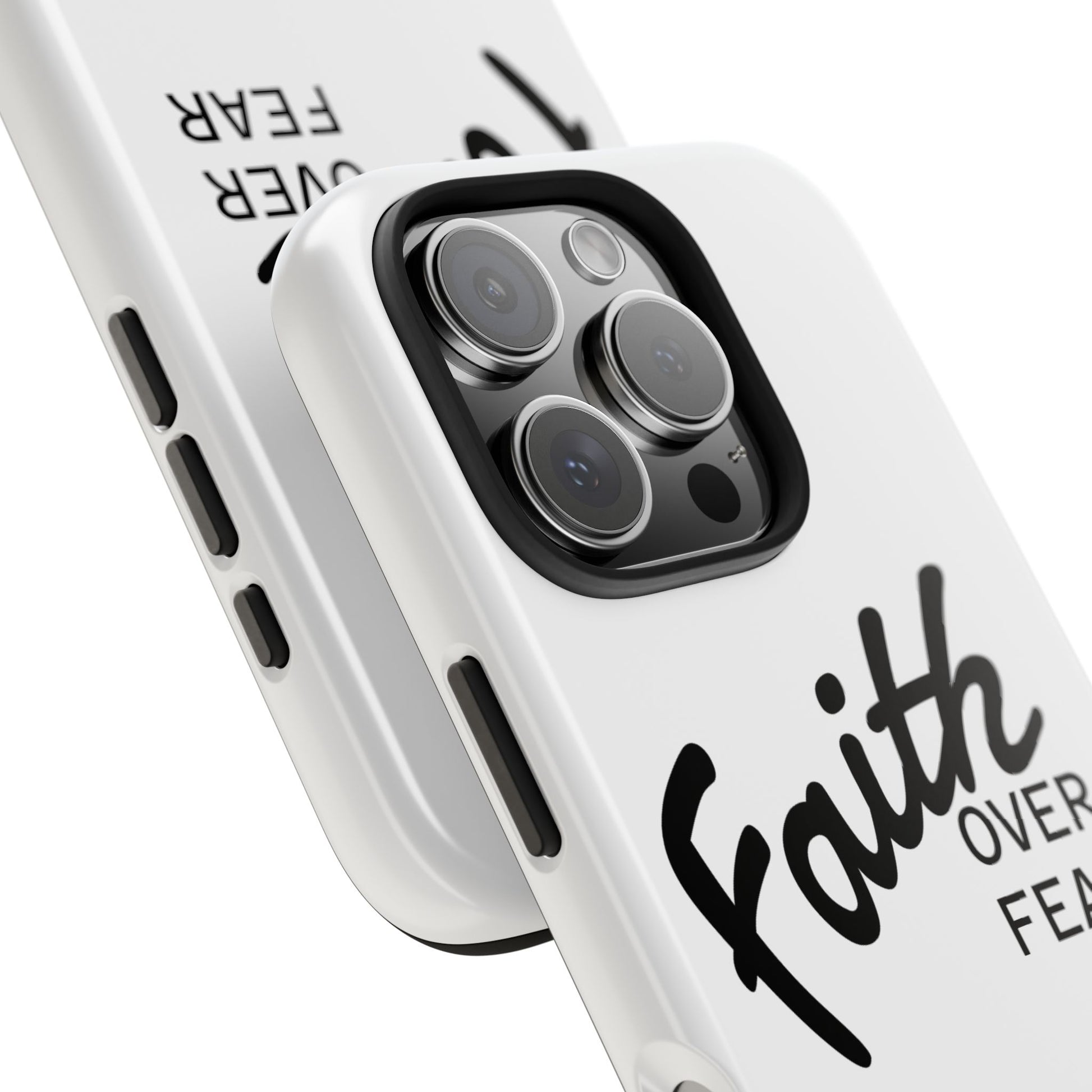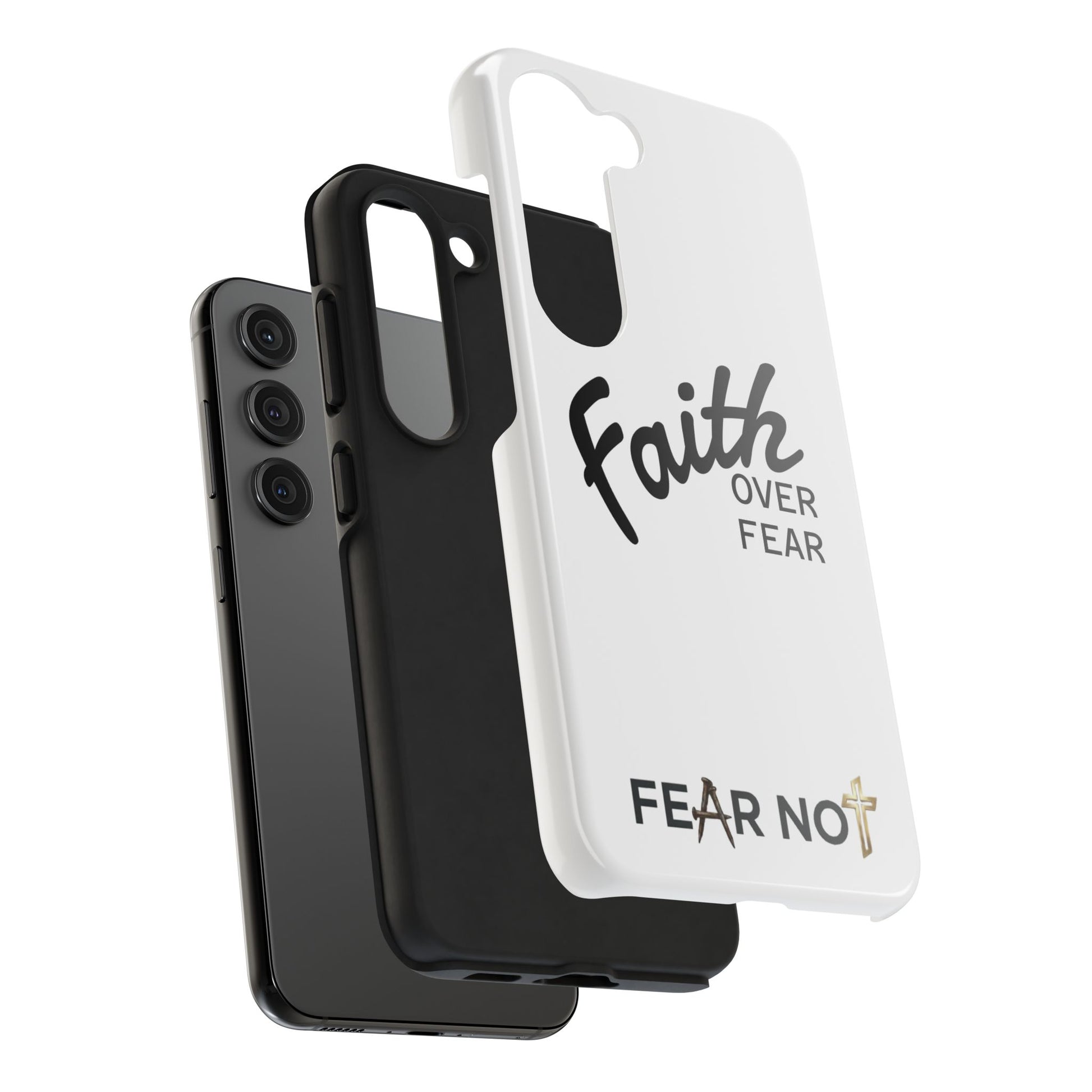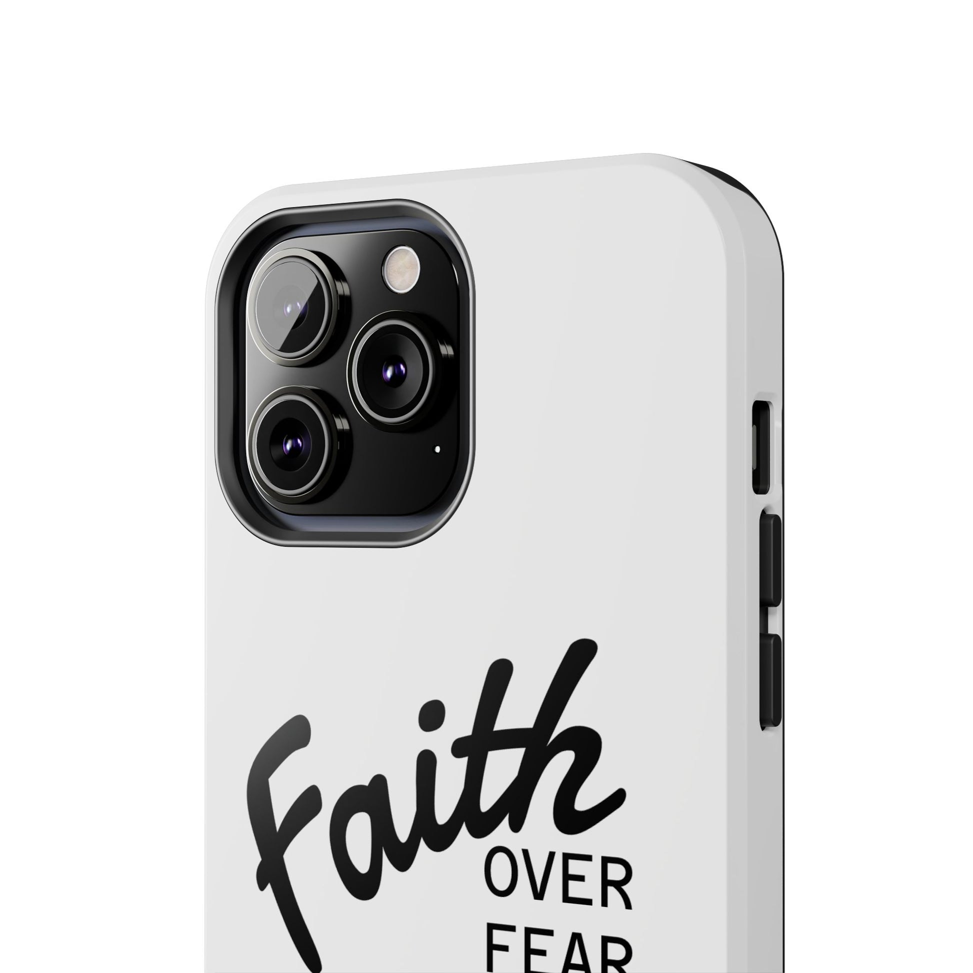 Carry a quiet declaration of courage with this slim, glossy phone case. Clean white with bold, handwritten "Faith over Fear" lettering and a subtle "Fear Not" footnote with a small cross — it feels like a steadying reminder in your pocket. The two-piece construction and soft inner liner cushion against drops while the raised bezel helps keep the screen safe when you set the phone face down. It slips easily into a bag, catches the light with a glossy finish, and keeps its look outdoors thanks to UV protection. For someone who wants daily encouragement woven into everyday gear, this case blends faith-forward style with dependable protection.